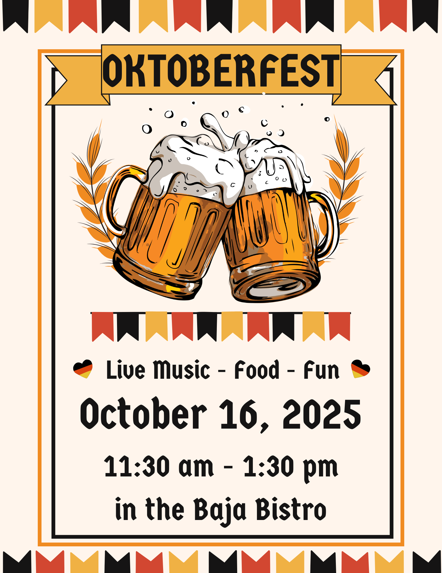 Bring a dish, share a laugh, and enjoy a true taste of community at the Baja Bistro. Our potlucks are the perfect way to connect with neighbors over a great meal and good conversation. Runs November 11, 2025 – March 24, 2026 on Tuesdays at 5:00 pm (no potlucks on 11/25, 12/23, 2/17, and 3/17).
