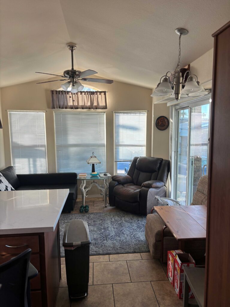 Newer Park Model with updated kitchen including quartz countertop and new dishwasher. Price includes adding a washer and dryer in shed or can build a new 8’x15′ shed with washer/dryer, 2nd bathroom with toilet and shower and room for a murphy bed for about $8,000, sale price of $138,000. Compared to older models that are at the end of its lifespan, this unit will last 40+ years and is in compliance. It is currently not occupied and ready to move in. Text me to view or for more pictures. Paul Beus 435-279-3294
