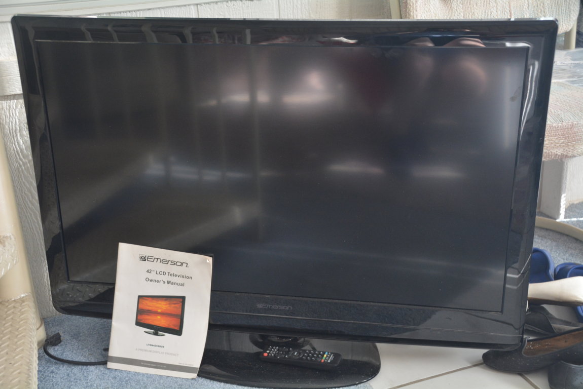 42″ Emerson television both picture and sound work great, high def only, not 4K or smart, bought from Walmart about 12 years ago, bought new tv so available, $20, at 521 Aztec