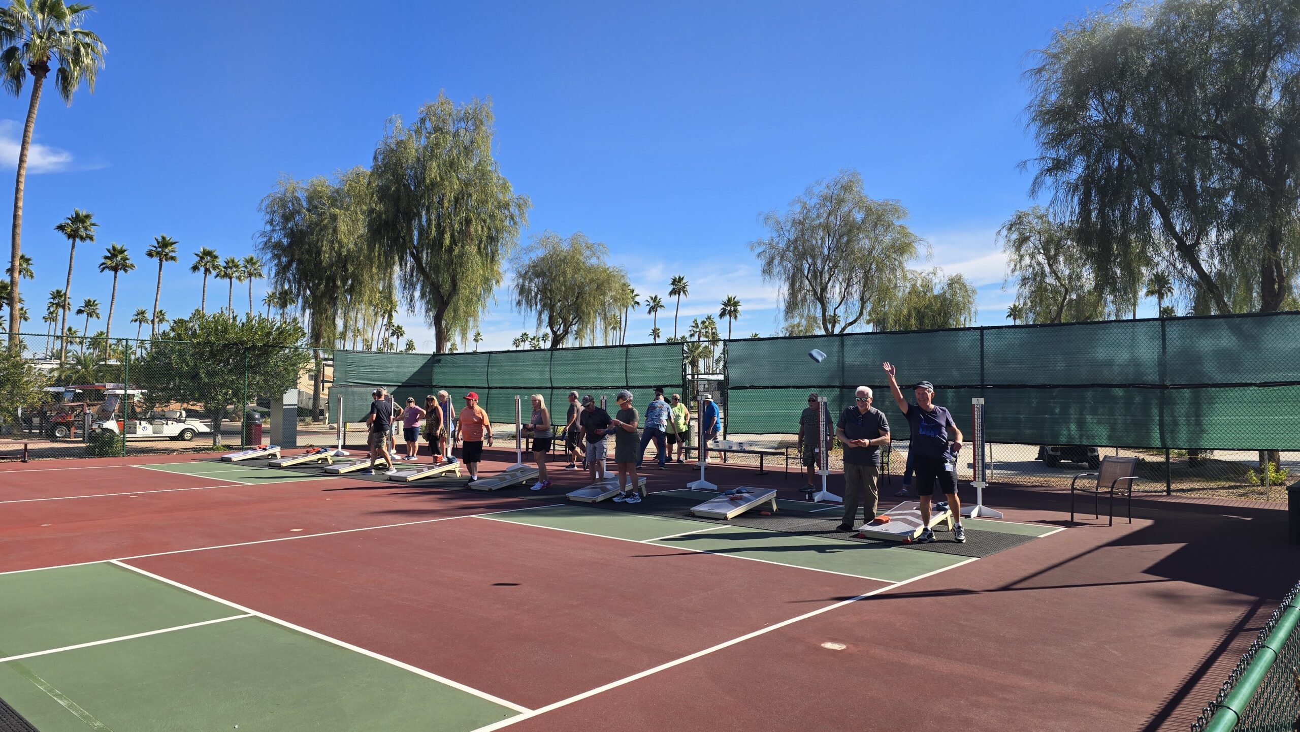 Membership is open to eligible Venture Out residents and guests in accordance with park rules; some fundraising tournaments specify that participants must be club members. Certain events require advance sign up at the Cornhole courts, especially Mixed Draw tournaments, lessons, and fundraising events.