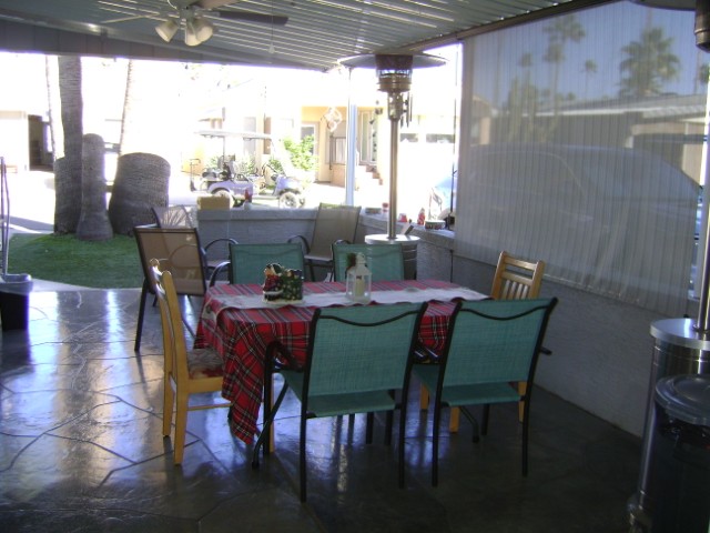 Such a nice place! This is an 84 home that has had nice updates through the years! Seller was a contractor in another State if that says anything… So this place is super clean. Very open living, dining and kitchen area. Roomy bedroom with triple closet spaces. Washer & dryer located right off the bedroom. Bathroom with step in shower. FANTASTIC COVERED PATIO with nice flagstone look finish on floor and is ideal for entertaining a large group. Patio is also equipped with 2 patio heaters for the cooler evenings. Shed/ workshop area will be well equipped. Home furnishings remain!