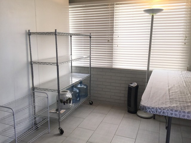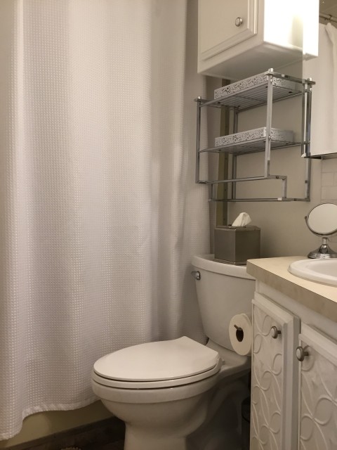 Center bath, Queen size lift n store bed (big enough for a king bed)