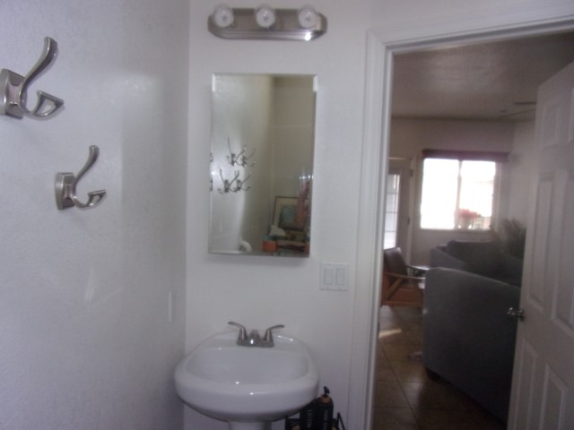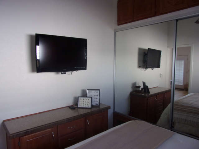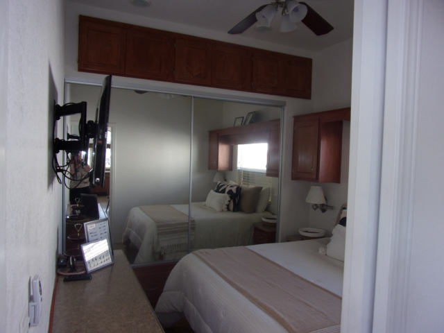 Very nicely updated home. Open AZ room with tile flooring, 2 sitting chairs, love seat, Murphy bed and flat screen TV. In the AZ room is a 1.5 bath with updated stackable/front loading washer/dryer. As you curve to the left from the AZ room there is the bedroom with a Queen bed, long dresser, 2 end tables, large mirrored closets and a mounted flat screen TV. Move out of the bedroom and to your left is the full bathroom with a walk-in shower.