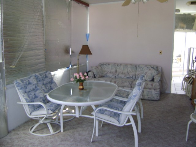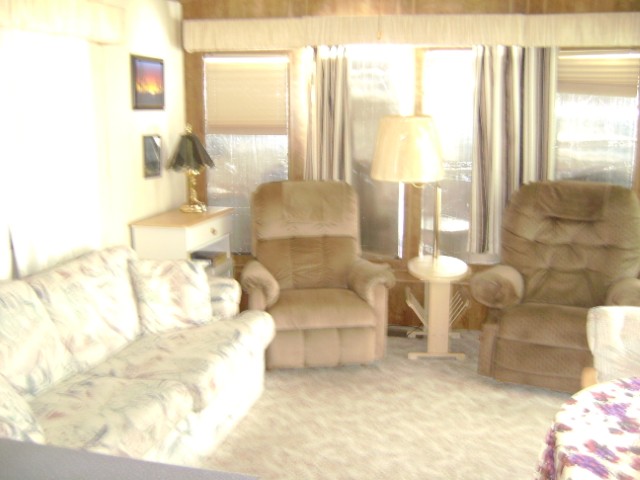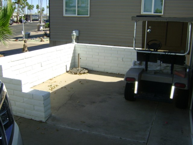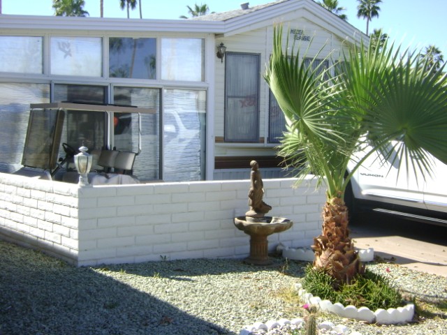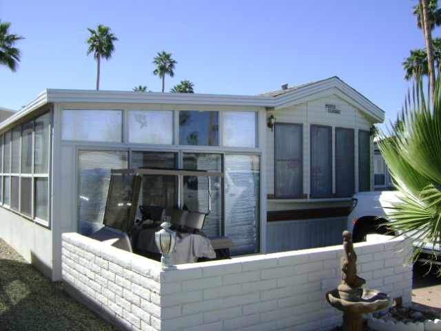 1989 Park model w/ AZ Room. Large laundry and storage room. Home is furnished as seen. Golf cart stays “as is”.