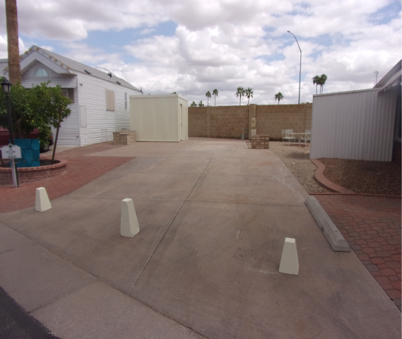 RV lot for rent. Available now through February. It backs up against the wall so no neighbors behind you! Nice area to left of pad to set up BBQ and chairs to enjoy the great weather and entertain friend. There is a shed but the owner has it locked for their own use.