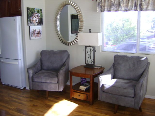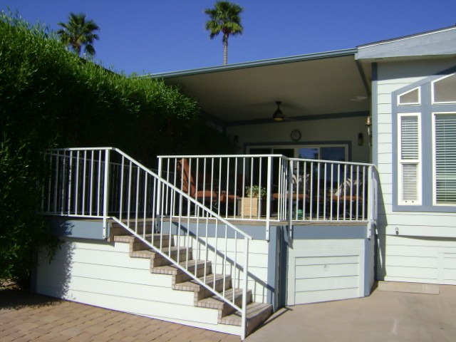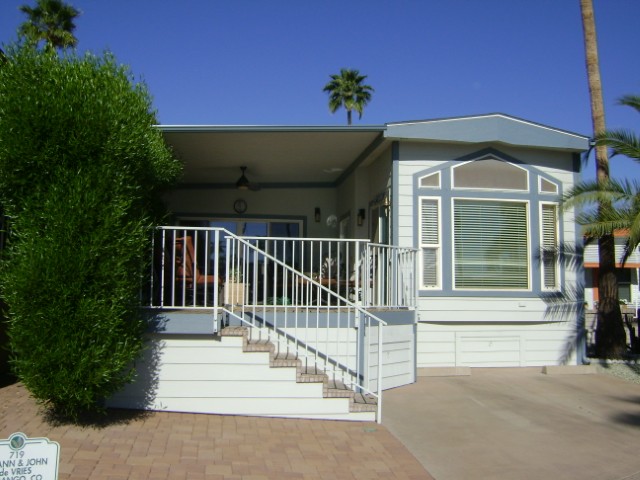 Immaculate 2010 park model with AZ room and Huge Deck. Fresh exterior paint and newly sealed Az Room roof. New lazy boy couch and chairs are among the other nice furnishings that Sellers are leaving. TONS of storage in the Az Room. Water softening system AND reverse osmosis. 2 pull out storage drawers under home. Storage room with workbench out back. Stacked washer and dryer as well as a built in ironing board. A NICE PLACE!