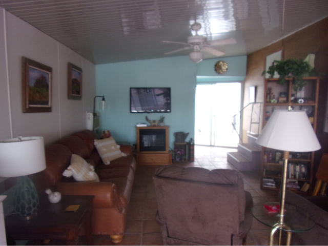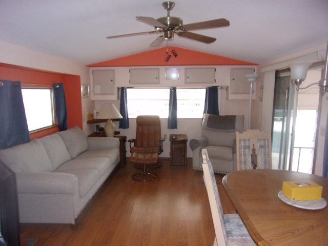 Owners are giving this unit a facelift and is going to look great once done! Painted AZ room to lighten up and brighten. New blackout curtains are going to be put up. Big open AZ room with Terra Cotta tile, Murphy bed, electric fireplace, Flat screen TV and separate inside laundry room/storage with washer/dryer. Park Model has newer Queen sofa sleeper, recliner, wood end tables with phone jack to charge your cell phone, new curtains, flat screen TV and wood flooring. Open kitchen/dining area with big dining table. The bathroom is going to be renovated and will be completed by end of November. Comes with BBQ. Pets Allowed.