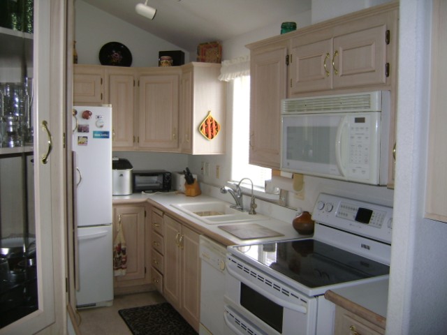 - 2003 one level CORNER LOT HOME!!! Spacious deck faces East and is perfect for watching the sunrise with morning coffee! Large living room with high ceilings. Big dining room for entertaining guests. Kitchen with all white appliances (including a dishwasher). Plenty of cabinet and drawer storage as well as a pantry. Bedroom with a good amount of closet space and a built in set of dresser drawers. 1 Bathroom right next to the bedroom. 2nd bathroom off of the living room. Good set up for having company. Laundry room offers a bunch of extra storage. Seller will be leaving this home furnished.