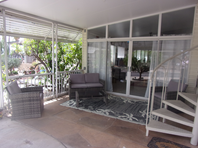 The owner has done a lot to this unit! New paint on the inside and outside, beautiful remodeled bathroom and new furniture. Wood flooring in Park Model. Nicely furnished AZ room with lots of natural light with separate laundry room with new washer/dryer. TV in living room and AZ room. Nice flagstone covered patio.