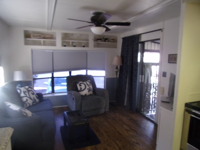 Very close Community Center and pools. Great front patio relax and people watch. Wood flooring throughout. New shower and Queen sofa bed. New countertops in kitchen. New stackable washer/dryer. Flat screen TV in AZ room, living room and bedroom. Lots of closet space in bedroom. Comes with BBQ. Pets Allowed. Internet included.